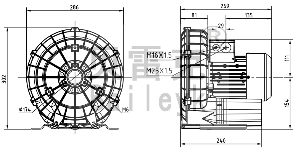 最大風(fēng)量:145m3/h 最大正壓:120mbar 最大負(fù)壓:120mbar 防護(hù)等級:IP55 噪音:63db 重量:15Kg |