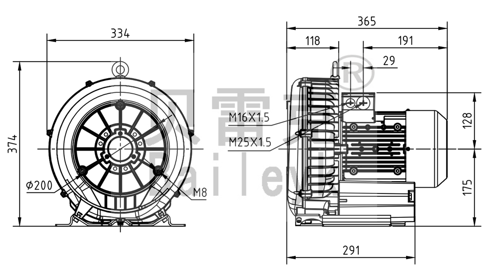 最大風(fēng)量:270m3/h 最大正壓:150mbar 最大負(fù)壓:160mbar 防護(hù)等級(jí):IP55 噪音:65db 重量:24Kg |
