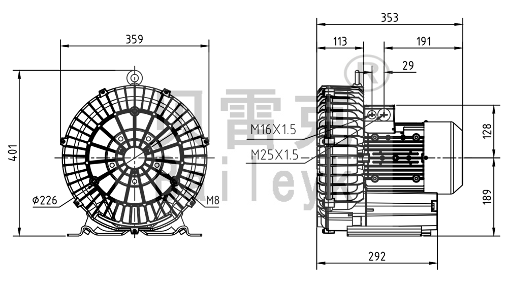 最大風(fēng)量:270m3/h 最大正壓:220mbar 最大負(fù)壓:235mbar 防護(hù)等級:IP55 噪音:67db 重量:27Kg |
